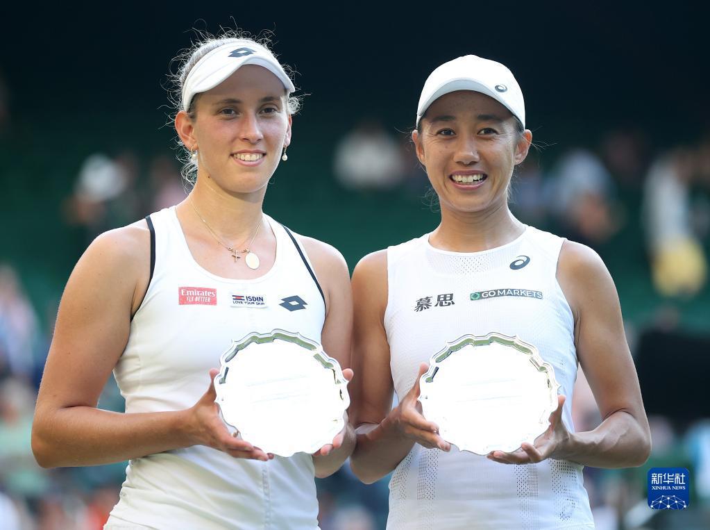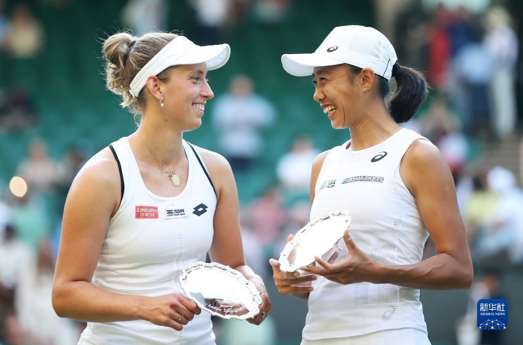 7月10日,张帅(右)/梅尔滕斯在颁奖仪式上。新华社记者 李颖 摄