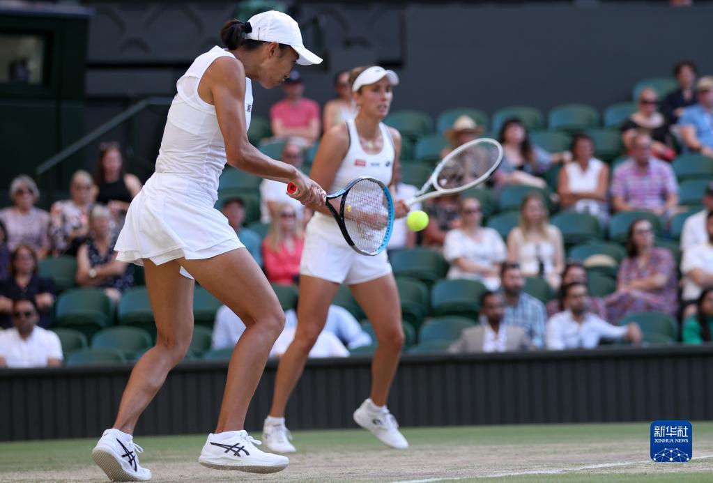 7月10日,张帅(左)/梅尔滕斯在比赛中。新华社记者 李颖 摄