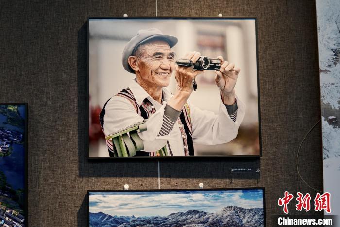 本次展出的作品,包括西南乡村的节日庆典、农作物丰收、高速公路建设、山水航拍、科技赋能农业生产等素材。其中,云南展区的一幅摄影作品《家乡美景看不够》,画面中一位耄耋老人手持摄像机拍摄,其神情专注,脸上洋溢着笑容。