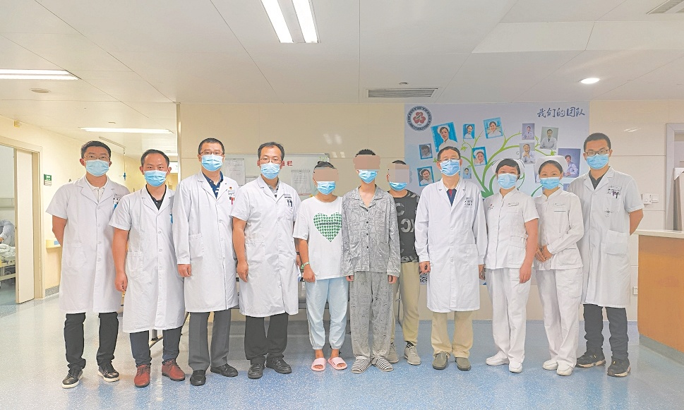 出院前小林一家与医护团队合影 图片由武汉大学人民医院提供