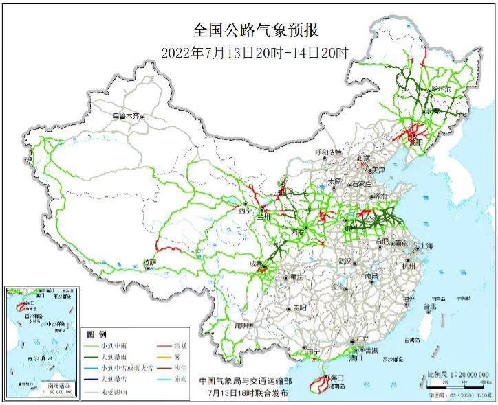 交通运输部发布出行提示:7月13日20时至14日20时,内蒙古东北部、黑龙江南部、吉林西部、西北地区东部、黄淮南部、江淮、四川盆地西部等地部分地区有中到大雨,其中,内蒙古东北部、黑龙江西南部、吉林西部、山东南部、安徽北部、江苏北部、四川盆地西部等地部分地区有暴雨或大暴雨。另外,山西西南部、辽宁中北部、黑龙江西北部、山东西南部、湖北西北部、广西南部、海南岛大部、四川中部、甘肃中部、青海东北部、宁夏中北部和南部、西藏东北部等地局地有雷暴。