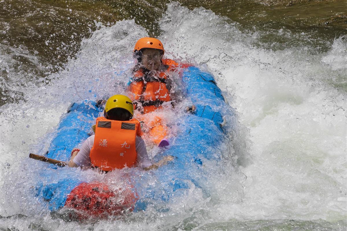 据介绍,九畹溪漂流景区距三峡大坝仅20公里,有6.4公里激情漂,32道浪花飞溅的急流险滩,28个深潭,急流落差100余米,湾道此起彼伏。在惊险刺激的同时,景区在河道内配备了专业安全护漂员,分布在每个险滩点,让游客玩得开心、漂得放心。