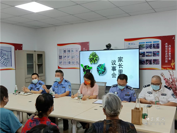 荆楚网(湖北日报网)讯(记者李燕 通讯员周黎)为推进党员干部“下基层、察民情、解民忧、暖民心”实践活动走深走实,7月8日,武昌区紫阳街道水陆社区在二楼会议室召开“家长里短议事会”,居民代表就自己关心的小区环境、社区安全等问题提出意见建议,与街道派出所民警、物业公司负责人面对面交流沟通。