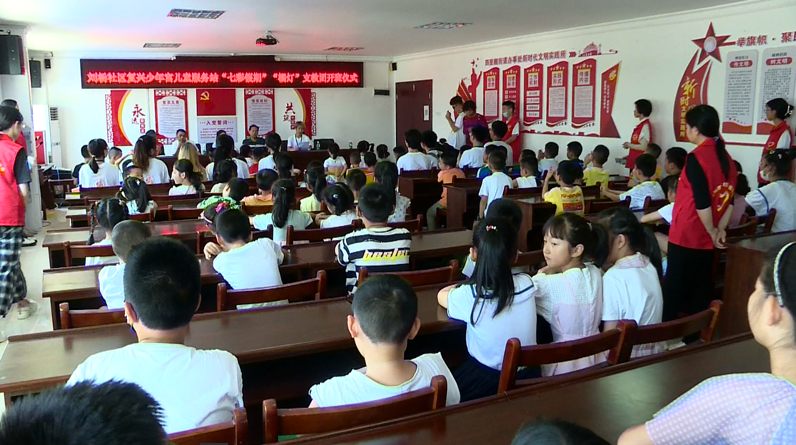 “七彩假期”由团省委、省文明办组织大学生志愿服务团队,结对乡村学校开展假期活动。中国地质大学”“橘灯”支教团利用大学生专业优势,在刘杨社区儿童服务站,分年级开设音乐、绘画、体操、书法、英语口语、心理辅导等课程,旨在为孩子们度过一个有意义的暑假。