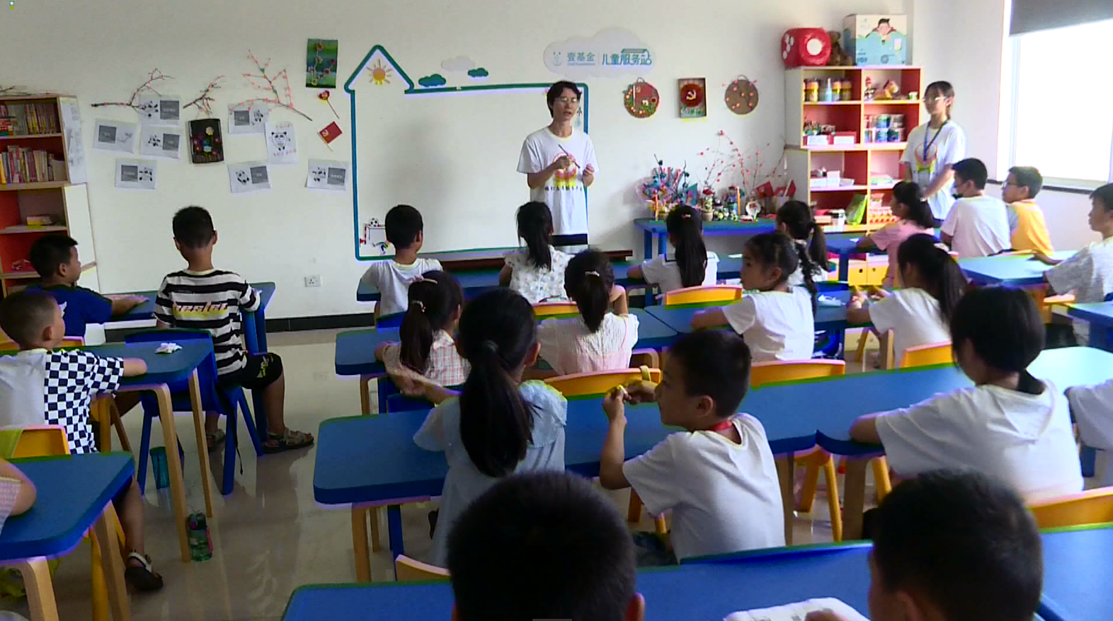 7月11日,应城市四里棚街道刘杨社区儿童站一片欢声笑语,中国地质大学“橘灯”支教团12名大学生走进儿童站,将与孩子们度过20天的“七彩假期”暑期生活。