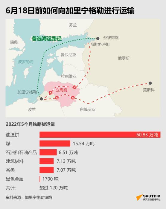 第一波被禁运的,约占俄本土运到加里宁格勒物资的50%,包括金属、煤炭、建筑材料等生产物资。