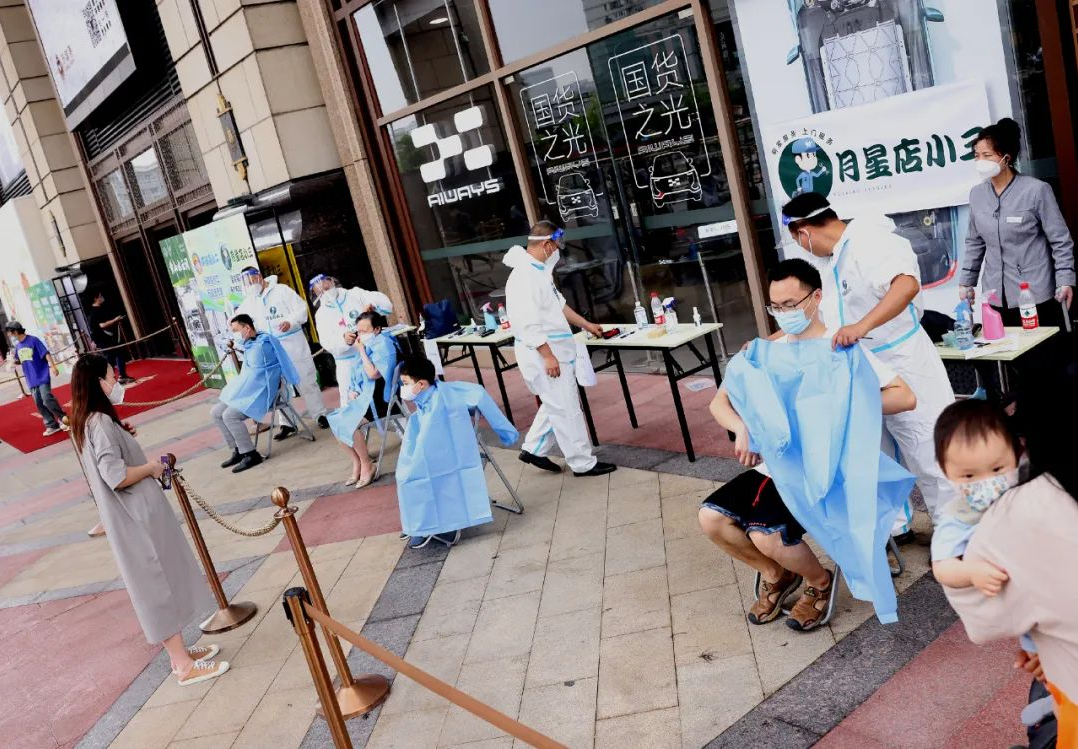 2022年7月8日,西安市曲江新区紫汀苑社区居民进行核酸检测。新华社记者 张博文 摄
