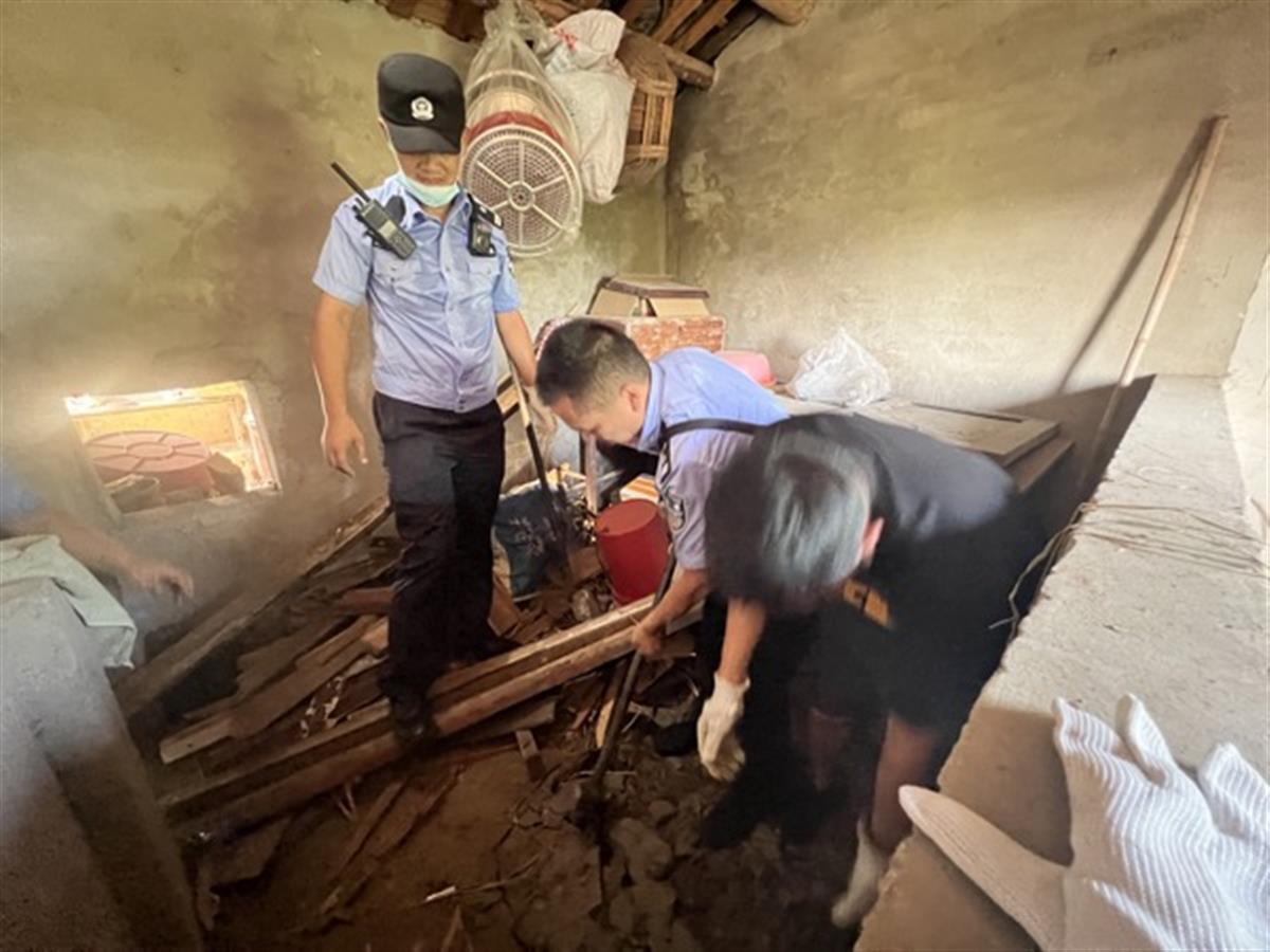 民警们抡起锤子斧头轮番开凿,20分钟后,水泥地终于开了条缝。本以为水泥层撬开就稳操胜券了,没想到嫌疑人为了保险起见,挖了近2米深的坑洞,专班民警只能拿着铁锹铲、拄着钢筋撬……