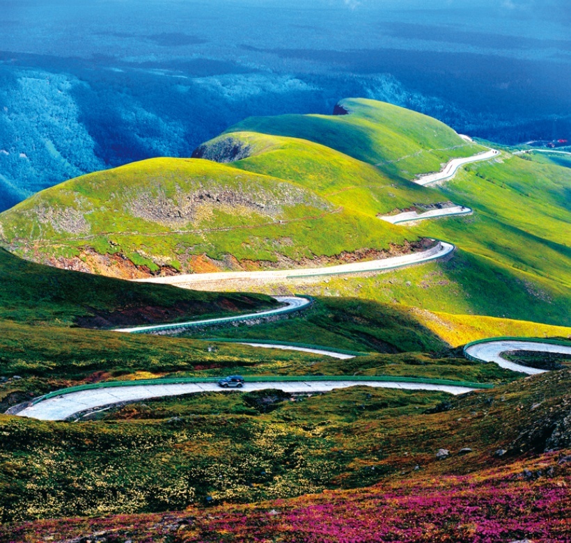 “一山分四季,十里不同天”。沿着蜿蜒山路登顶主峰,移步换景,美不胜收。草木幽深,瀑布飞腾,山顶苔原野花遍布,点缀丰富色彩。