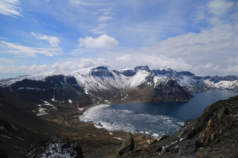 据当地介绍,天池“开冰”分为文开、武开两种形式,“文开”是指湖面上的浮冰逐渐变薄、破碎、融化,“武开”是指随着气温升高,浮冰在大风和湖水合力作用下瞬间破碎成无数小块后,逐渐融化消失。每年“开冰”时节,因为主峰气候多变,“文开”“武开”都成为一个悬念,更为天池增添一分神秘色彩。