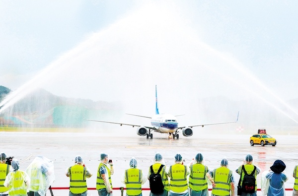 2022年7月17日上午,来自北京的CZ5679次航班顺利着陆,鄂州花湖机场以民航界最高礼遇“过水门”致意。