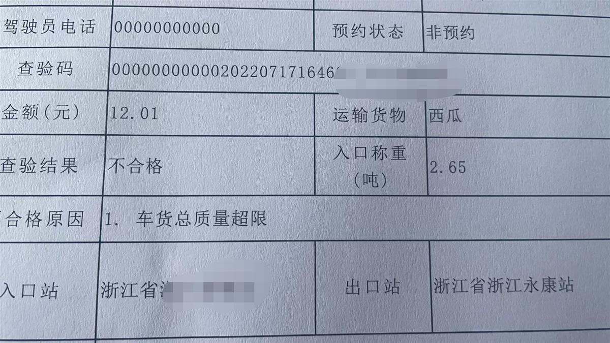 相关热议源于一名货车驾驶员7月17日下午发布的短视频,视频中他自述道:“(装了)一千斤东西,车还没装满,永康收费站说超了0.3公斤,因此不给绿色通道。”一旁的收费站工作人员也表示超重了0.3公斤。