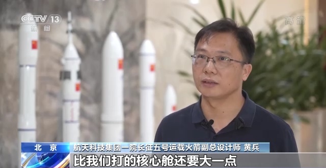 航天科技集团一院长征五号运载火箭副总设计师 黄兵:和上次相比的话,整个“问天”(实验舱)在规模上比我们打的核心舱还要大一点,但是这个也是在我们长五B火箭的运载能力范围之内的。它是一个空间对接的交会任务,所以整个发射对我们的准时性要求非常高。