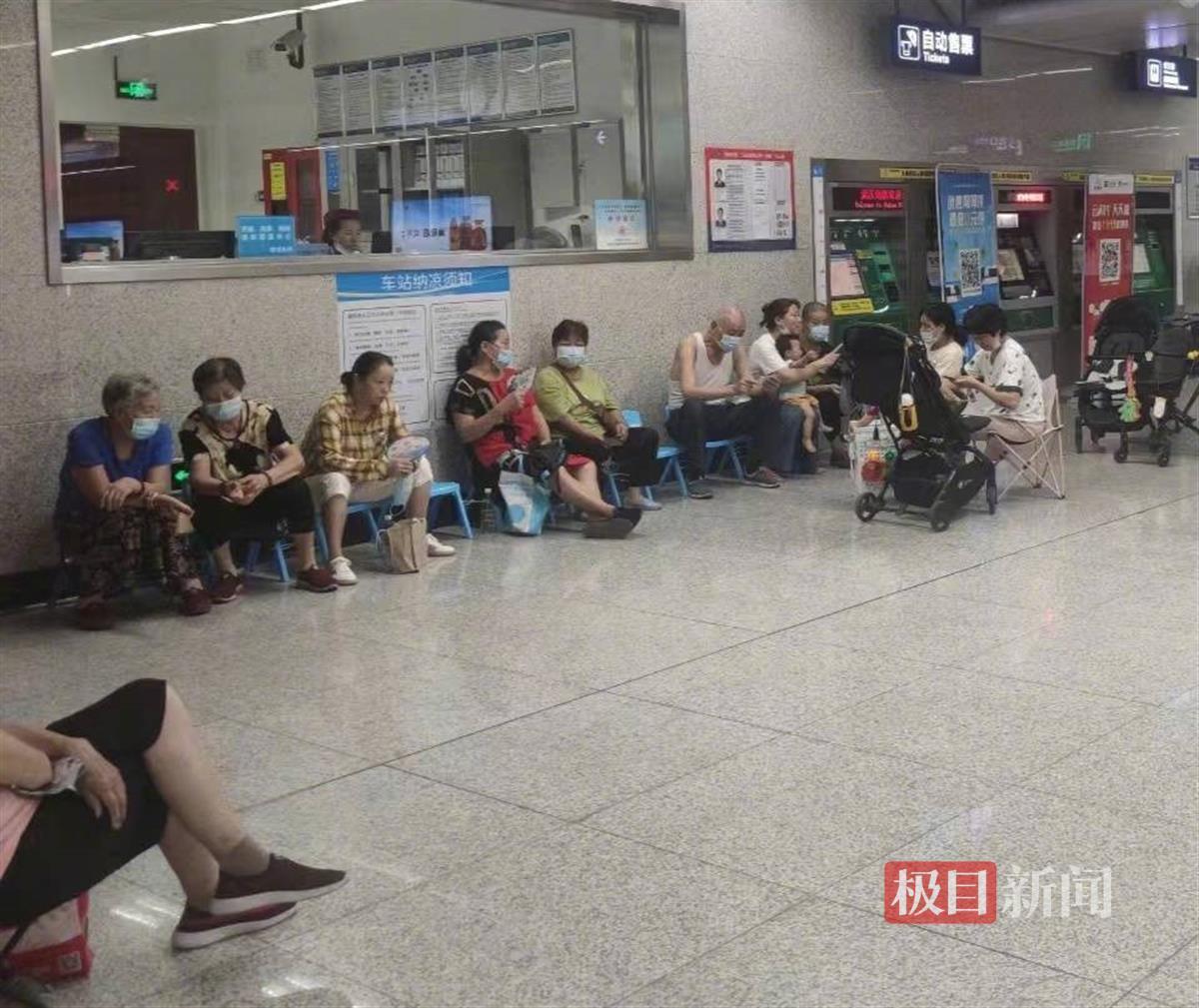 18日上午9时许,极目新闻记者来到武汉地铁6号线前进村站看到,在车控室的大玻璃前,几位市民坐在小板凳上纳凉,钱阿姨提着菜篮子走过来,也在一张小板凳上坐下:“歇哈子再回家”。