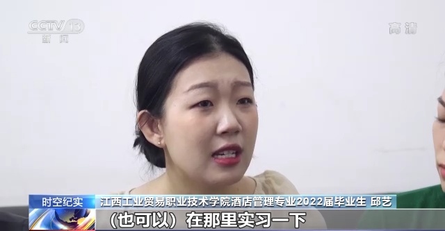 酒店管理专业毕业生 邱艺:就是如果实在没办法留在南昌的话,去别的地方我也可以接受,我还挺开心的,学校没有放弃我们。