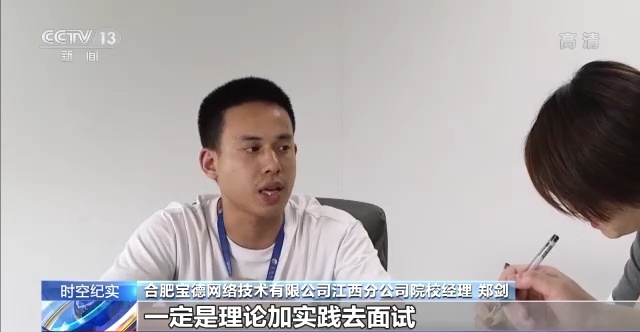 合肥宝德网络技术有限公司江西分公司院校经理 郑剑:目前我们企业过来的话,一定是理论加实践的去面试。