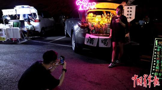 中青报·中青网记者在阳峰路夜市采访时了解到,能做后备厢摆摊生意的,基本都是有车一族,加上装饰布置的成本,比摆地摊的门槛要高不少。从营收的角度看,后备厢创业的摊主因为摊位较为光鲜亮眼,市场管理方会将其安排在较好的位置。但除了位置优势,在经营方面,他们跟同一市场经营的三轮车摊主或地摊摊主相比,并没有明显优势。跟一些操着大嗓门揽客和猜码免费喝的地摊经营者的野性营销相比,后备厢区的摊主明显要佛系很多。