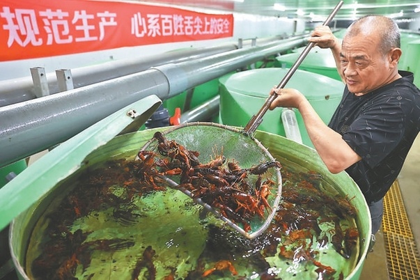 “暂养车间的小龙虾都是刚从江苏、江西基地运来的,通过低温暂养技术能够保证长期存活,同时将体内泥沙排出、提高品质。小龙虾在暂养车间储备暂养,然后供应知名餐饮企业,可以实现一年四季都有鲜活肥美的小龙虾供应市场。”京城老鱼(北京)农业科技观光园经理陆凌云介绍,目前园区建有两座小龙虾暂养车间,可同时储备暂养鲜活小龙虾150吨,很大程度上减少了小龙虾从原产地发货到销售地“囤货”过程中的死亡率。园区鲜活小龙虾的吞吐交易量可达到350万斤,簋街很多知名餐馆的小龙虾就出自这里。