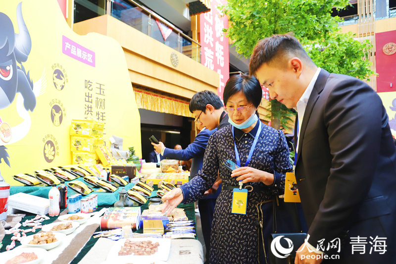 与会嘉宾参观牦牛产品展示区。人民网 杨启红摄