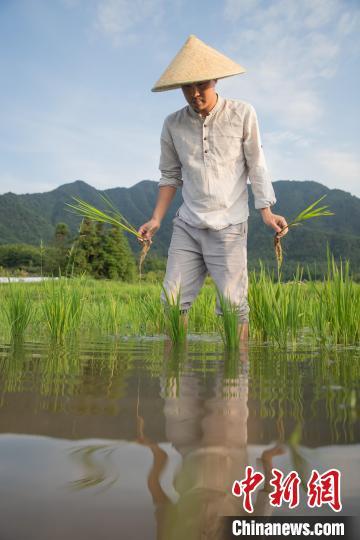许学超在七约农场插秧。 黟县县委宣布部供图