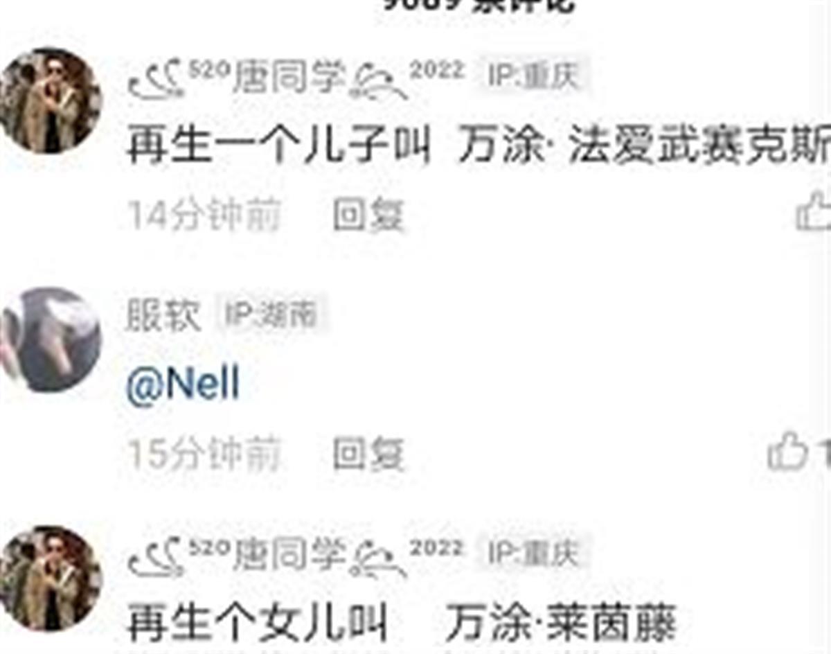 7月19日,万涂思瑞的爸爸万先生将孩子的出生证明发到自己的抖音上,很快成为爆款,媒体纷纷请求采访。万先生抖音仅800多粉丝,但到20日下午6点,评论9284条,点赞7387,转发8140,该条抖音排到了社会榜第7,显示有16.3万人在看。评论区热闹得不行,全国各地网友开启调侃模式。还有网友脑洞大开或受启发,晒出各种奇葩四字名。