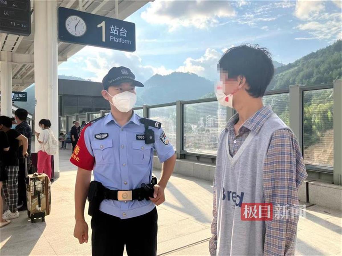 原来男孩姓高,今年18岁,高中刚毕业,家住保康县歇马镇庙坪村。当日上午,小高因琐事与父亲发生了争执,赌气从家里搭车来到后坪镇,准备乘高铁去南漳县小姨家,但由于身无分文,也没带手机和身份证,无法进站购票,便独自在进站口徘徊。
