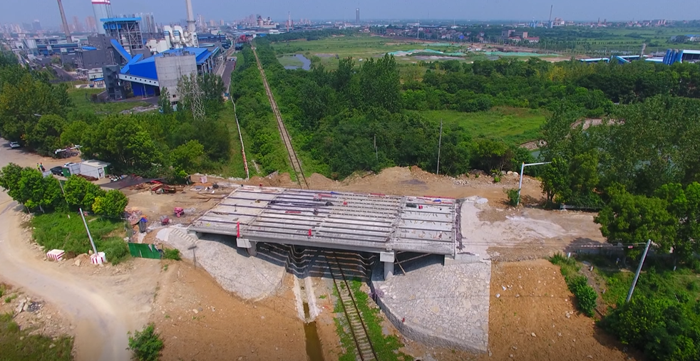 在建设过程中,由于桥下铁路运营原因,施工建设方每天需停工4小时,为货运铁路让行。为确保桥梁建设进度,施工建设方抢晴天战雨天,确保按时间节点完成建设任务。目前,已完成桥梁主体工程建设,正在进行桥面护栏安装、路面沥青铺设等工作。预计8月中旬可贯通通车。
