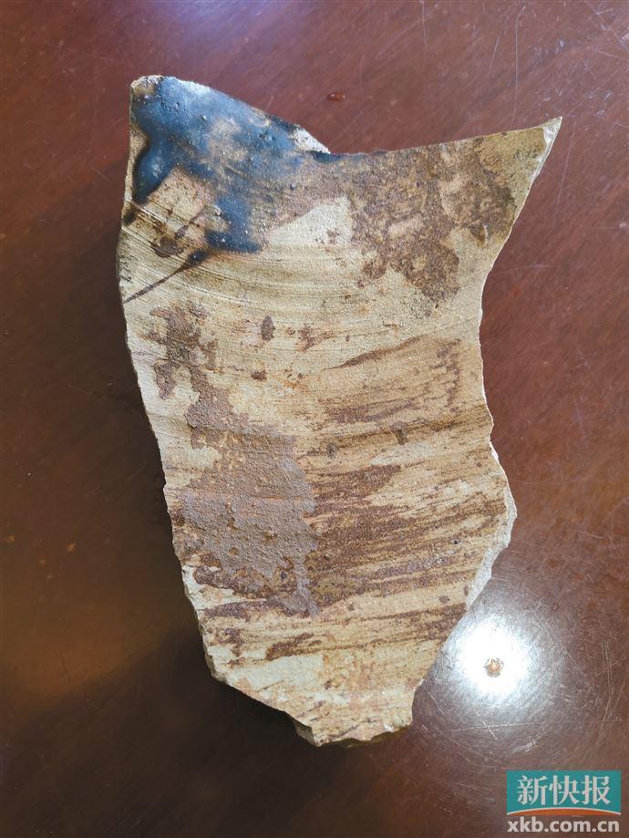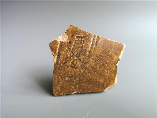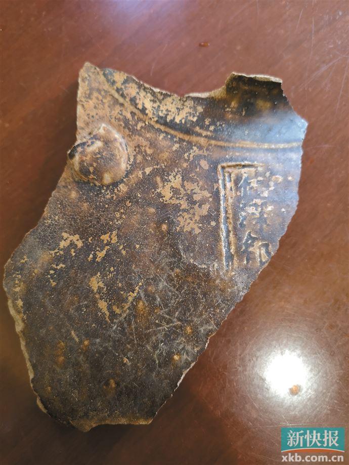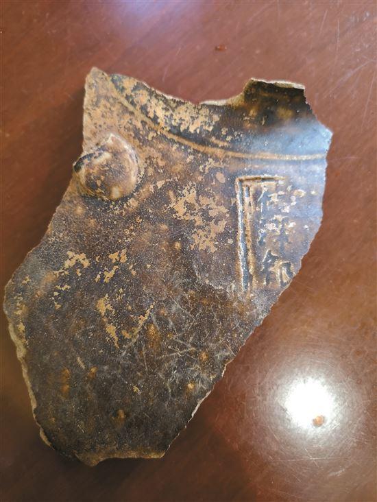 2021年8月13日在文头岭窑址采集的“何深郡”印文酱釉陶罐残片