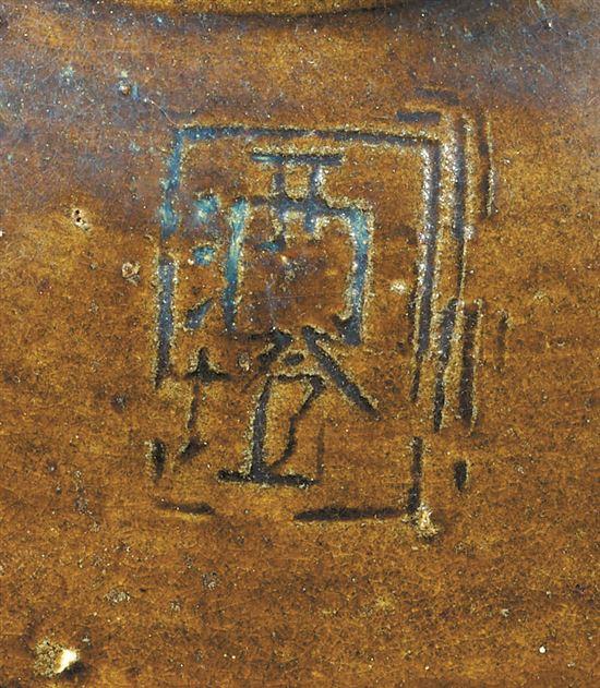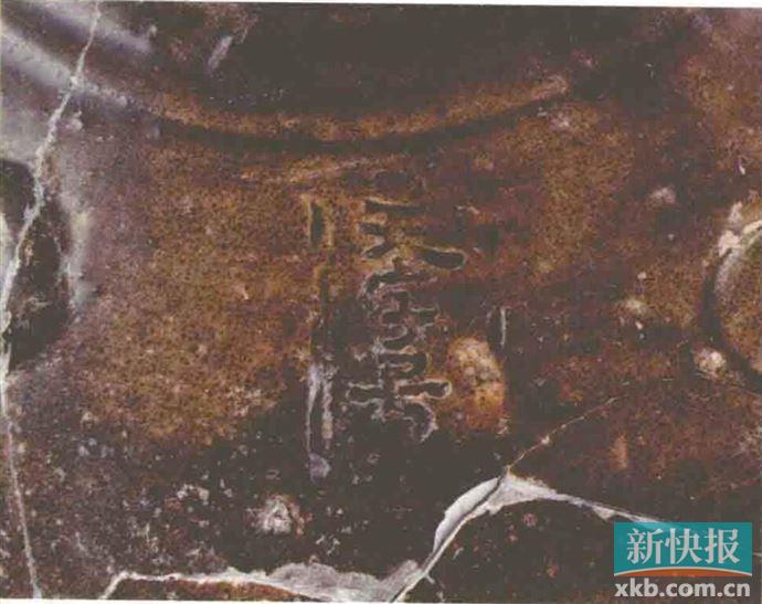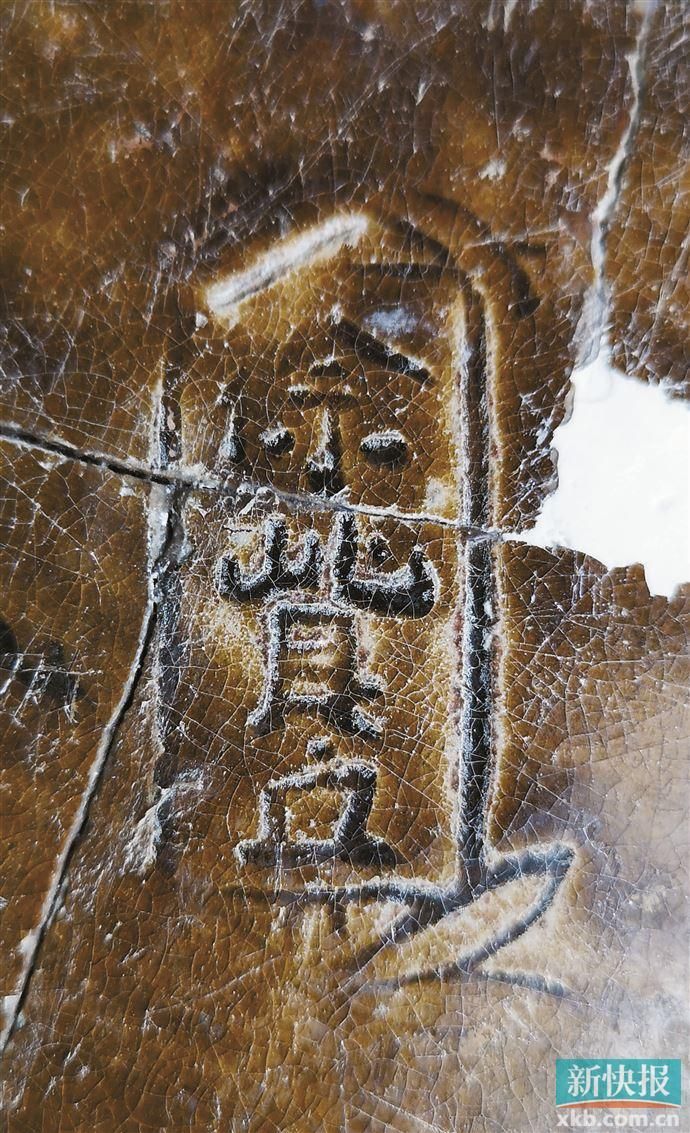 南越国宫署遗址出土的宋代奇石窑“徐货皿”印文酱釉四耳大罐和局部