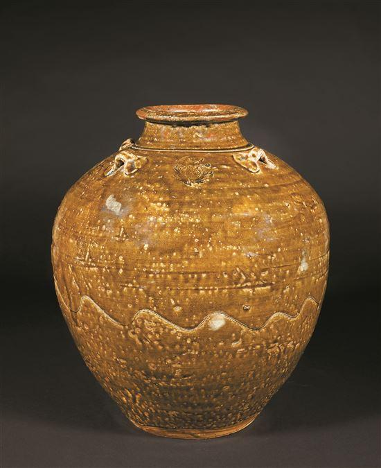 黄慧怡:通过对比大量海外、东南亚及中国地区的考古发现,我们认为此类罐子的花纹,一类印有花卉装饰,一类有印章铭记,一些罐子腹部有波浪纹装饰;不少胎质较粗松,胎釉结合较差,釉层多剥落;釉色以青黄釉为主,还有淡青、深青绿、酱黄、酱褐、酱黑釉及无釉器——这些都是“广东罐”的特色。