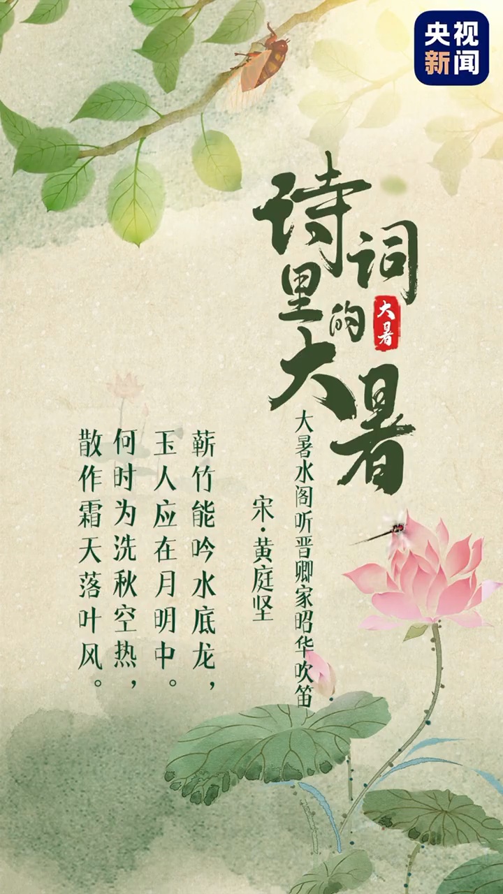 大暑时节,至为炎热。然而黄庭坚笔下的大暑,却别有风味:起伏悠扬的笛声,清亮婉转,听之如闻水底龙吟,如见玉人月明,濯洗了溽热,带来了秋凉。