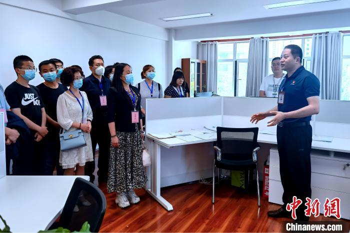 图为录取现场相关负责人向参观者介绍投档流程。 李隽 摄