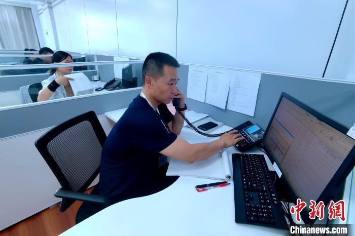 图为工作人员与招生院校沟通考生情况。 李隽 摄