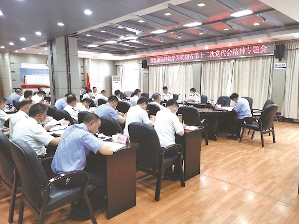 省监狱管理局党委理论学习中心组传达学习贯彻省第十二次党代会精神。