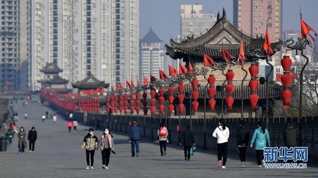 游客在西安城墙浏览。新华社记者 刘潇 摄
