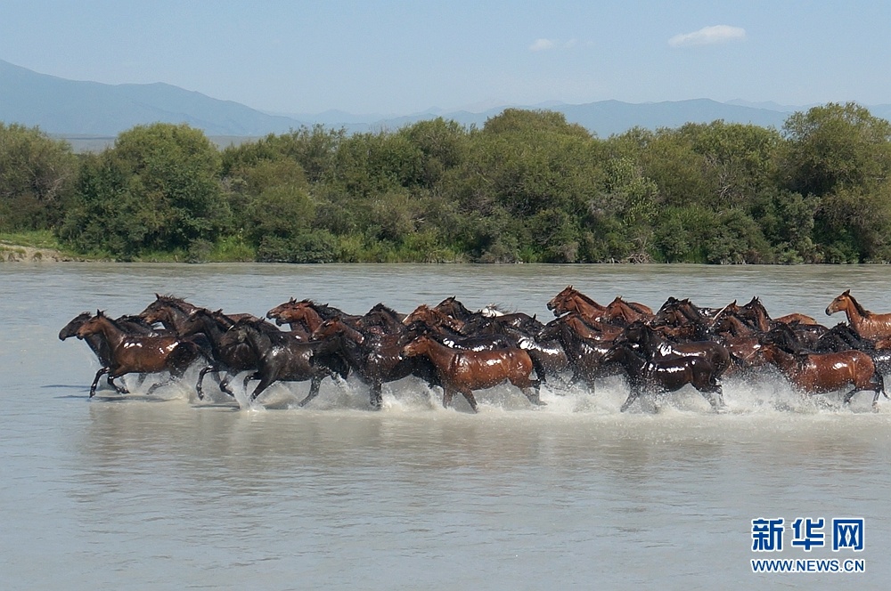 新华网伊犁7月26日电(记者刘琼)24日,“中国有约”2022国际媒体主题采访团走进昭苏湿地公园,目睹了“天马浴河”壮观景象。盛夏时节,牧民赶着马群来到这里,马儿在河中饮水洗澡、踏浪前行,场面十分壮观。