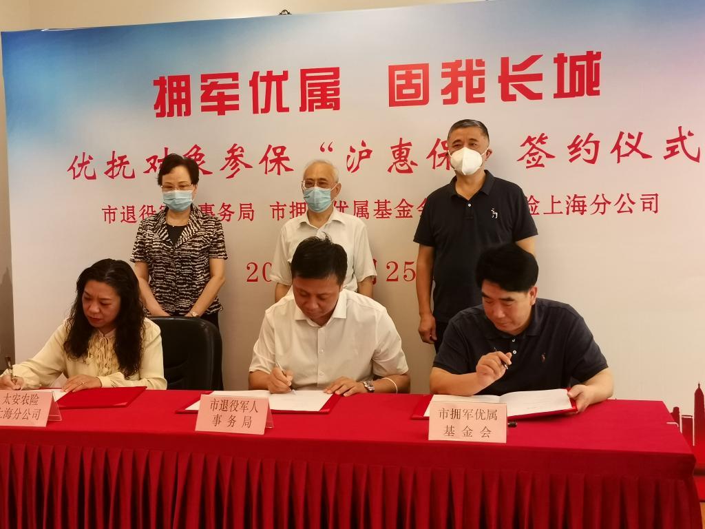 7月25日,上海市拥军优属基金会与太平洋安信农业保险股份有限公司上海分公司签约,连续第二年为部分优抚对象提供“沪惠保”团体参保服务。作为上海社会化拥军优属的重要“品牌”,“拥军优属、固我长城”主题系列活动今年安排了百余个实事项目。新华社记者潘清 摄