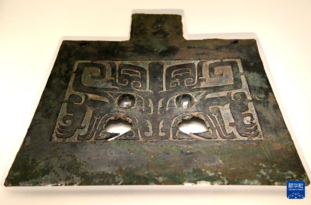 这是郑州商都遗址博物院内展出的兽面纹铜钺(7月26日摄)。