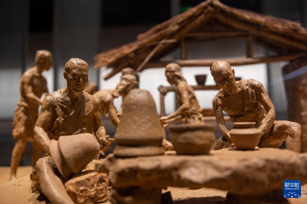 这是在郑州商都遗址博物院内拍摄的复原的制陶场景(7月26日摄)。