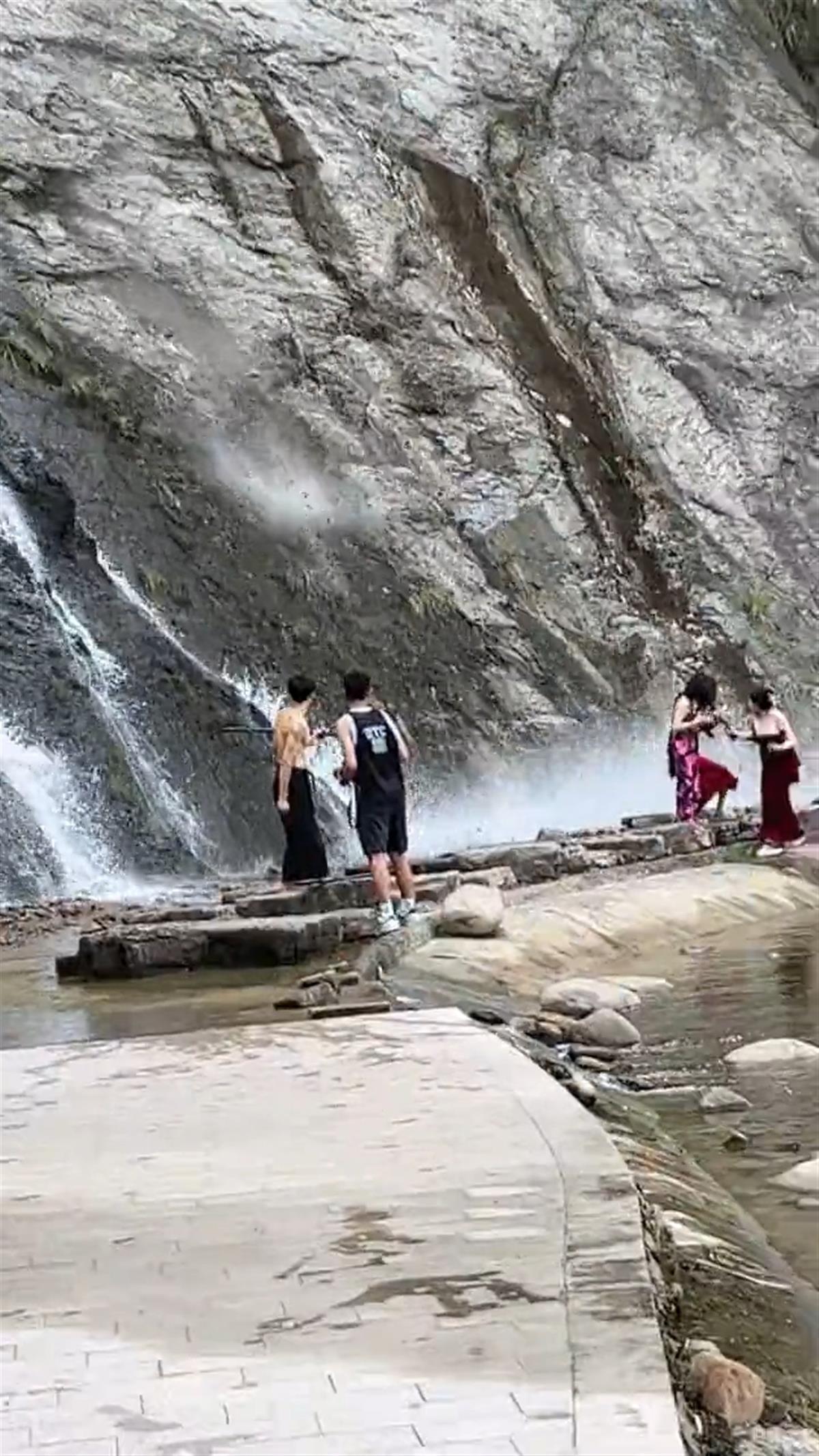 游客王先生向极目新闻记者介绍称,事发7月26日下午5时左右,当时他正在瀑布不远处的泳池游泳,突然听到石头滚动的声响,发现有个比脸盆大的石头在瀑布半腰处滚动,石头在滚动时碎裂,随后砸进了瀑布下方的水池。当时有三名女游客正在水池边拍照,幸好及时发现了正在滚落的石头,躲开了。