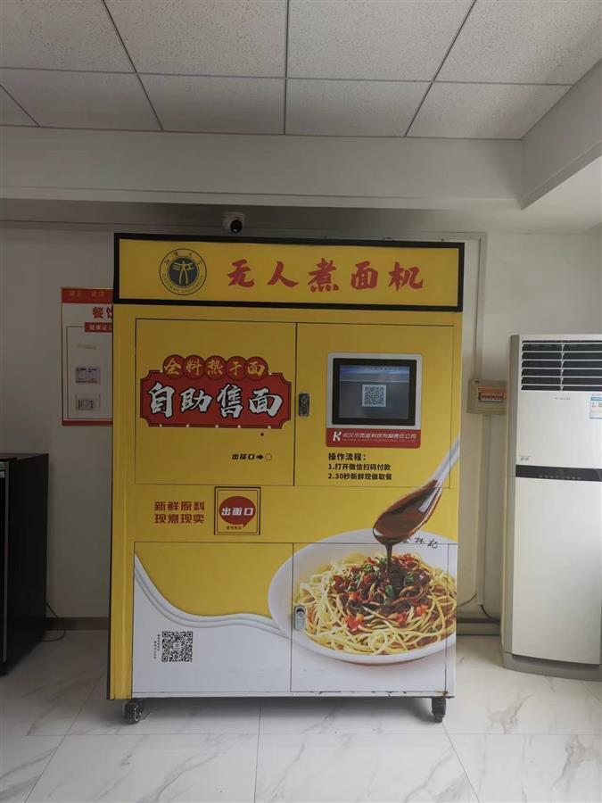 “浓香扑鼻。”打开手机微信,扫码,付费,等待50秒,一份热气腾腾的红油热干面由机器人从出口推出,摆到眼前。