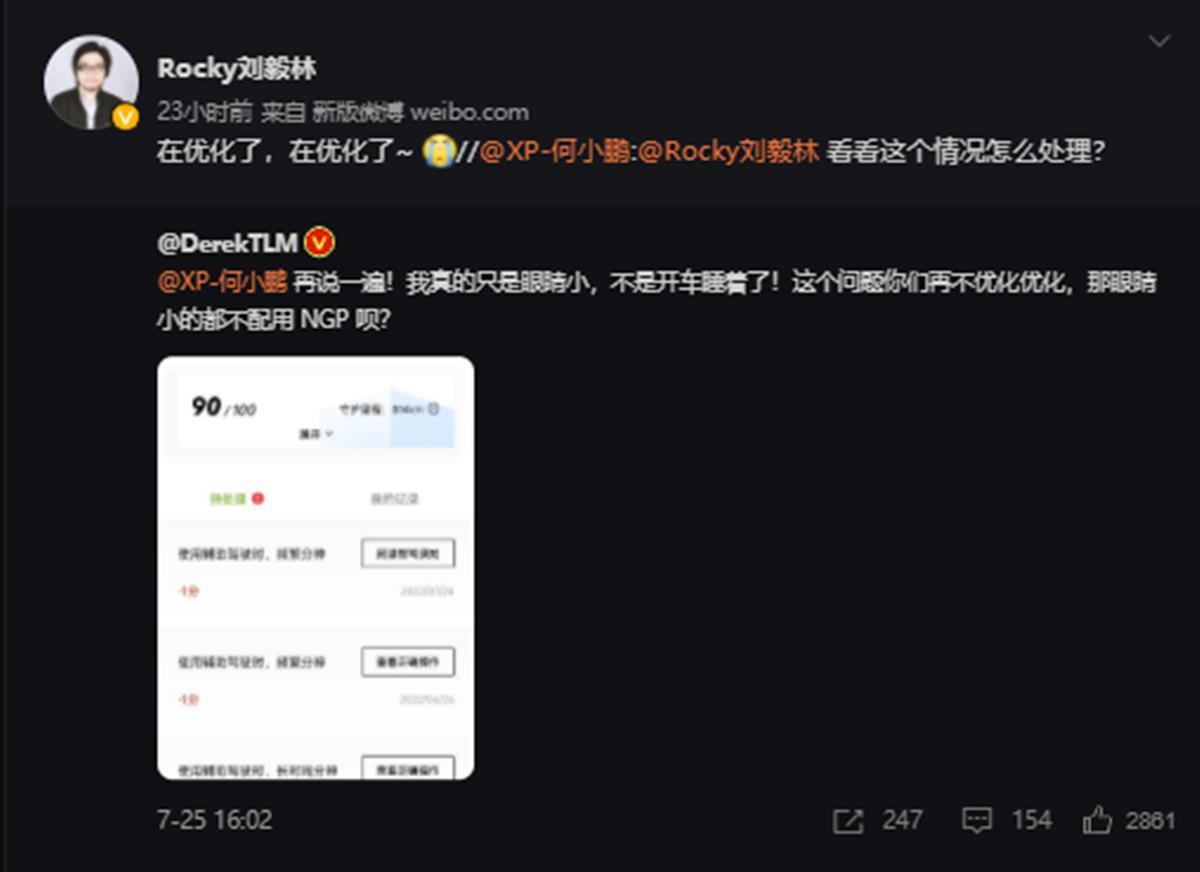 而26日晚,小鹏汽车创始人何小鹏也在微博中@相关高管,表示:“看看这个情况怎么处理?”相关高管随后表示,在优化了。