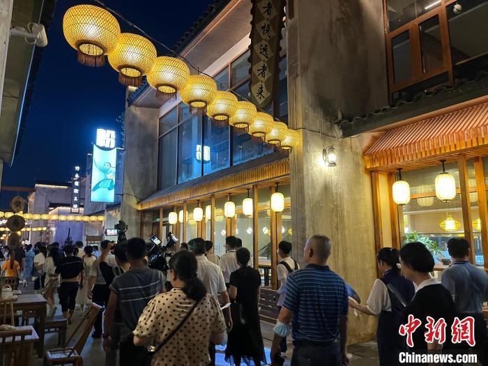 图为7月27日晚游客夜游江西上饶婺源徽市街。 李韵涵 摄