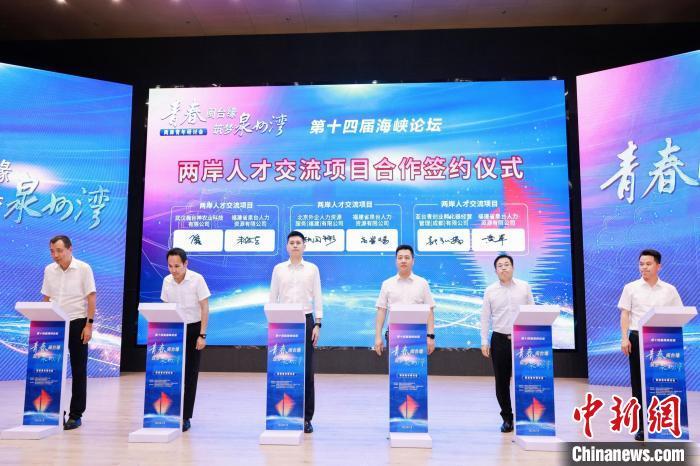 当天还举行了两岸人才交流项目合作签约仪式。福建省泉台人力资源有限公司分别与北京外企人力资源服务有限公司、台青创业孵化器经营管理(成都)有限公司、武汉瀚台神农业科技有限公司签约,未来将在两岸人才交流方面展开合作,携手为两岸青年创业就业创造更好的环境。