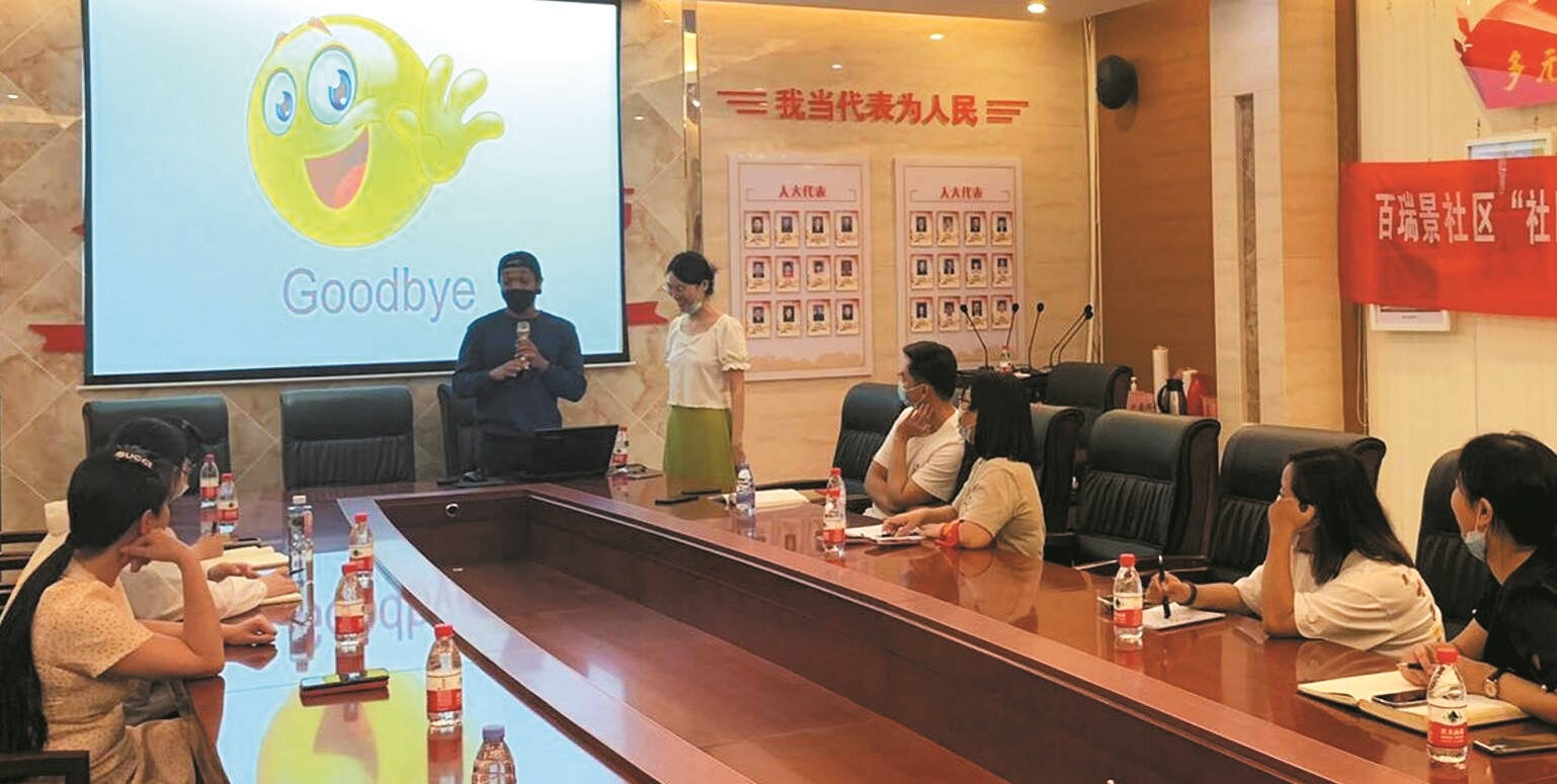“Good morning”“Nice to meet you”……7月19日,武昌区百瑞景社区开展“国际化社区英语培训”活动,辖区居民在社区工作者的引导下,学习英语口语,交流中外文化。百瑞景社区群干介绍,社区正在创建国际化社区,近期正链接社会组织和资源,请外籍志愿者为社区居民提供英语培训志愿服务。