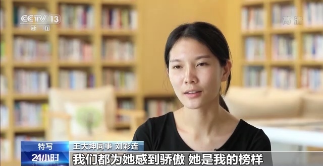 王大坤同事 刘彩连:我也考学士学位,也是想奔着这个目标去的。所以看坤姐她考上了,我们都为她感到骄傲,她是我的榜样,所以我就想朝着这个方向,有梦想去想一想,去努力一把。
