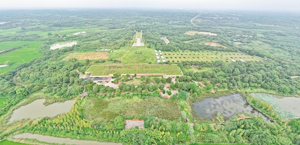 鸟瞰楚王车马阵景区(熊家冢国家考古遗址公园)。(湖北日报全媒记者 刘曙松 摄)