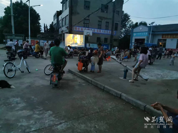 荆楚网(湖北日报网)讯(通讯员刘荻)一块幕布、一台电脑、一个投影仪、一圈板凳,一个小小露天影院就这样搭建好了。早早等待的观众们各自挑选板凳坐下,摇着蒲扇谈论着今日趣事。