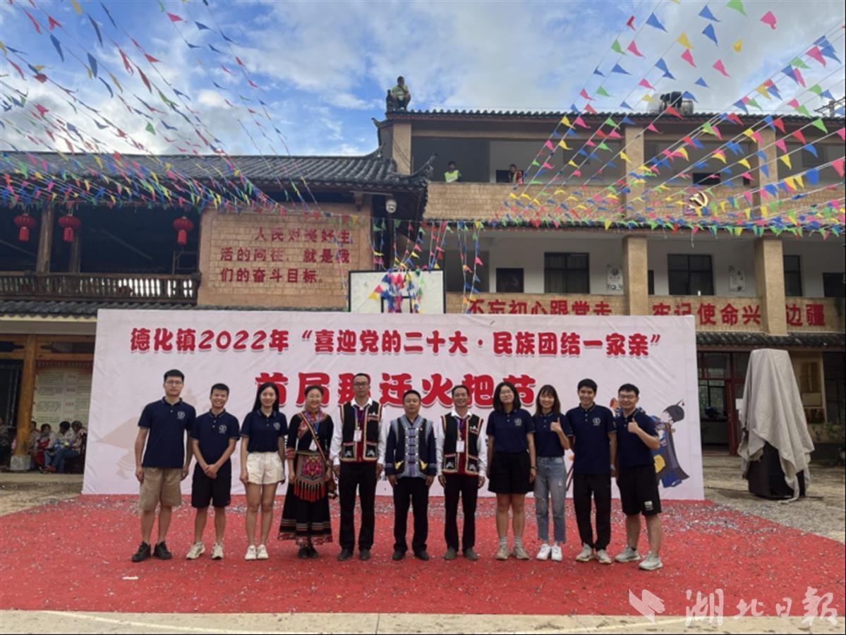 活动期间,华中科技大学学生们参与宁洱县德化镇那迁村举办的首届以“喜迎党的二十大·民族团结一家亲”为主题的火把节。学生们亲身体会到少数民族用舞蹈舞出民族风采,用歌声唱出民族和谐。“我志愿加入中国共产党,拥护党的纲领,遵守党的章程……”大学生党员代表面向党旗,举起右拳,庄严宣誓。