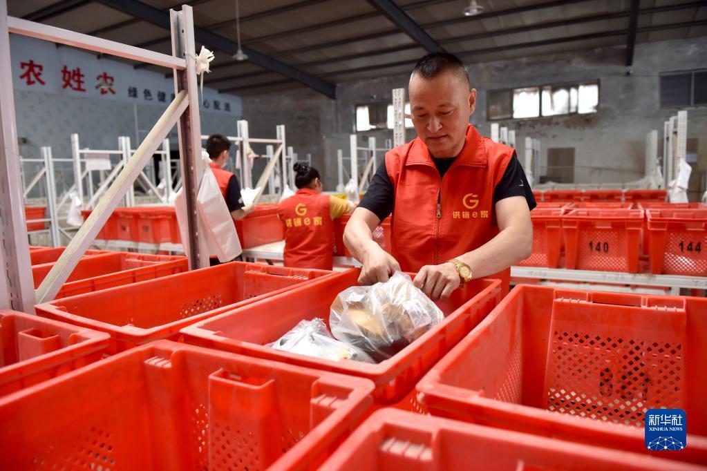 在河北省威县供销e家电商平台物流分拣大厅,工作人员忙着把特色农产品分拣、装箱、贴单……一派繁忙的景象。